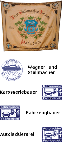 Die Innungsfahne der Stellmacherinnung überliefert, dass die Potsdamer Stellmacherinnung schon im Jahre 1734 gegründet wurde. Der Stellmacherberuf ist der Urberuf der Fortbewegungstechnik. Nicht nur Handwagen, Pferdewagen und Kutschen waren aus Holz, es gab auch im motorisierten Fahrzeugbau Holzkarosserien. Der F8 und der Trabantvorgänger P 70 waren PKW mit Holzkarosserien. Der Opel Olympia war 1936 das erste Auto mit Ganzstahlkarosserie.